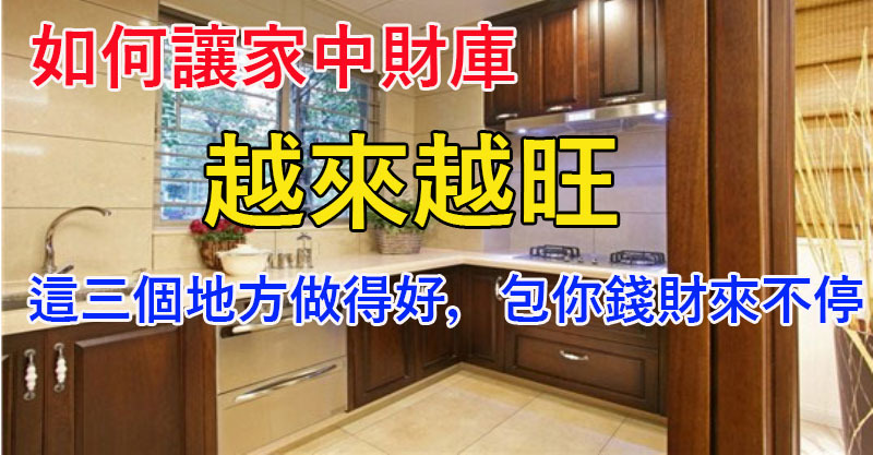 廚房是家居中最大的財庫,故廚房的位置、灶位、水位、門窗、布局等都相對重要,需要合理布局。如何合理布局,催旺你的財運,方法很多,講究門類也很多,一般需要有經驗的風水師現場操作,這裡不再贅述。