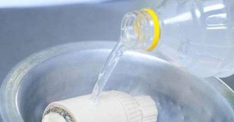 接下來,她把2茶匙的太白粉混合2茶匙的水,攪拌成糊狀後再加入1杯半的滾燙開水,製成「漿糊」。