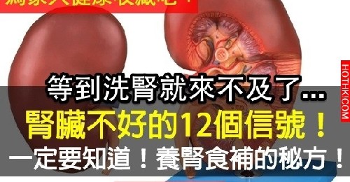 | 等到洗腎就來不及了!腎臟不好的12個信號!告訴你養腎食補的秘方!一定要看!(歡迎分...