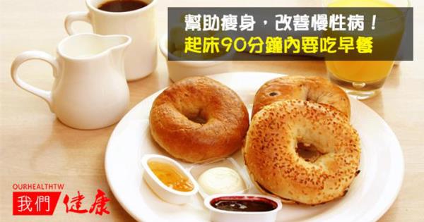你知道嗎?不吃早餐容易變胖唷! 人體在飢餓時,會先分解肝糖, 新陳代謝下降,體重反而會增加! 幫助瘦身、改善慢性病! ❤【起床90分鐘內要吃早餐!】 早餐是一天活力的開始,不只吃飽,還要兼顧營養均衡。 馬偕醫院陳信豪醫師說:「起床之後的大概一個小時左右,最晚不要超過一個半小時,也就是90分鐘,是我們吃早餐的黃金的時間。」 ■ 起床後20~30分鐘後再開始吃早餐: 因為消化係統開始運作,此時吃早餐更能充分吸收食物營養。
