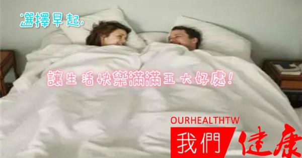 另外,早起還有五大好處哦: 脾氣更好。最新調查發現,早睡早起的人情緒更穩定。在針對6436人的調查中發現,早起的人精力更充沛,解決問題也更順利,處事更謹慎。 快樂心情。通常,早起的人比夜貓子擁有更快樂的心理感受,而且,隨著年齡增加,早起的這種優勢也就更加明顯。 提高人體免疫力。不論從中醫還是西醫角度,早睡早起的習慣都是有利健康的。