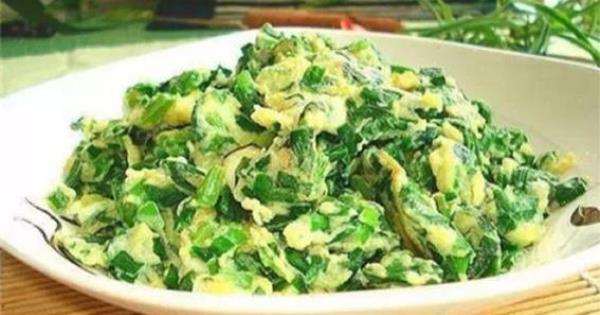 ②韭菜炒雞蛋:新鮮韭菜100克,洗凈切碎,雞蛋3隻(去殼),同切碎之韭菜搗勻,用素油、食鹽同炒至熟佐食。功能:溫中養血、溫腎暖腰膝。
