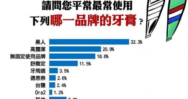 為保持口腔的清潔,每天應至少刷兩次牙,而刷牙時可透過「牙膏」來移除牙齒表面的牙菌斑及食物殘渣,避免如牙齦炎等口腔疾病,並協助抑製口臭。而在眾多的牙膏產品中,民眾平常最常使用哪一品牌的牙膏呢?為瞭解國人對於牙膏的慣用品牌為何,故波仕特針對此議題進行調查。  Pollster波仕特線上市調網針對1,759位受訪者詢問「請問您平常最常使用下列哪一品牌的牙膏?」,結果顯示以「黑人」的受訪者占多數,約為整體受訪者之32.3%;其次為「高露潔」,占20.9%;「無固定使用品牌」則排名第三,占18.6%。從結果可得知,近二成(18.6%)的民眾「無固定使用的牙膏品牌」;而「有固定使用品牌」者,最常慣用的牙膏品牌前三名為「黑人」(39.7%)、「高露潔」(25.7%)及「舒酸定」(14.1%)。