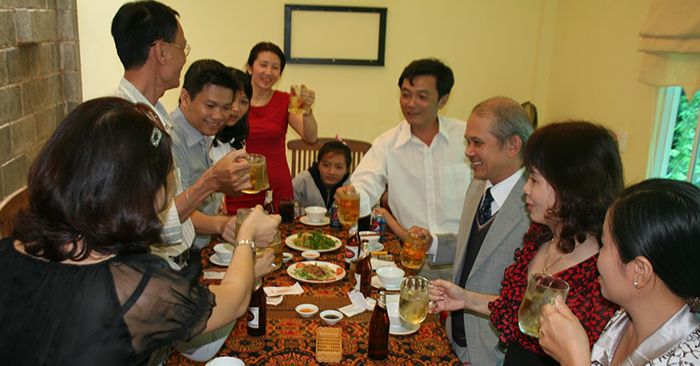 父親下了班匆匆忙忙趕去,同學們都已經坐好了,點了很多大餐,有的都已經上手吃了。