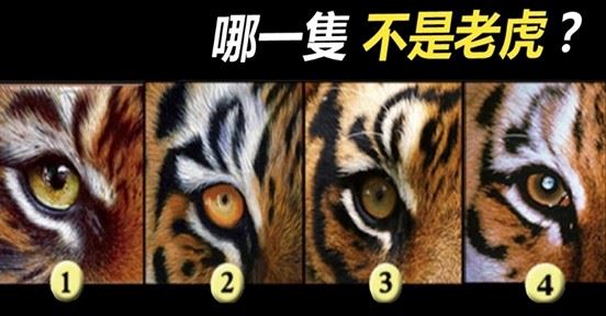 以下4張圖中,你覺得哪一隻不是「真正的老虎」?請仔細從圖中的各個方麵觀察分析,眼神、紋路、毛色...等都可以是你觀察的依據!