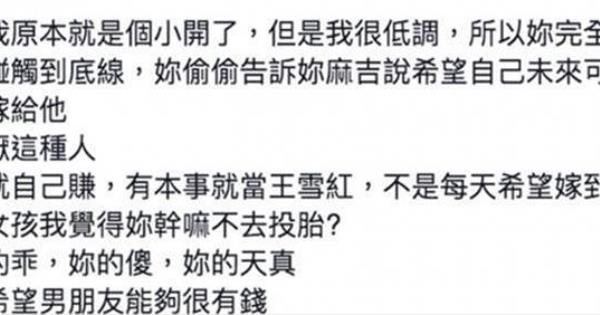 妳有本事就自己賺,有本事就當王雪紅,不是每天希望嫁到豪門