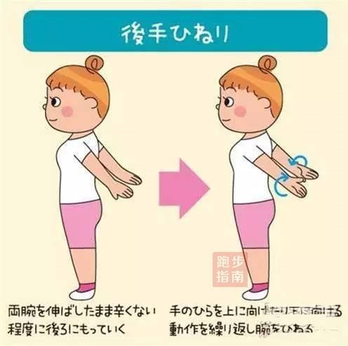 將兩手向後伸,高度控製在肩膀不會覺得不舒服的位置即可。接著像是在說再見一樣上下扭轉手臂,就是蝴蝶袖拜拜操了。