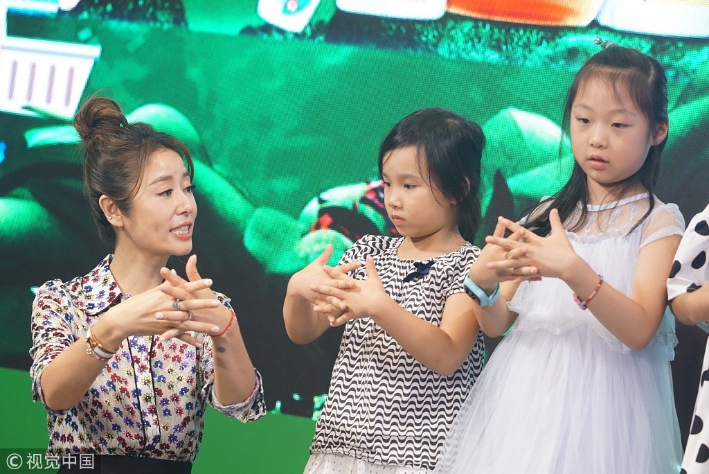 她蹲地與小粉絲互動顯親和,只是一不小心表情崩壞醜態盡顯。