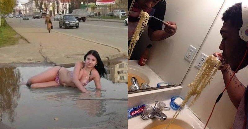 一組「背後超有故事」的奇葩內涵圖。卡在柏油路裡的白T金髮妹,請讓我幫你一把...