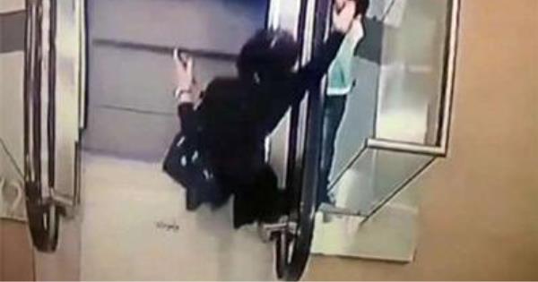 一定要無時無刻注意好動的小孩子啊 電梯事故時有發生。最近,一名5歲的俄羅斯女孩在商場內玩手扶梯,被黑色扶手扯到半空。阿姨見狀立刻過去營救,女孩卻從夾縫中跌落至一樓。這驚險的場景被監視器拍攝了下來,網友們紛紛為女孩捏一把冷汗。 ▼女孩被手扶梯扶手拉扯到半空。  ▼阿姨趕緊拉住她的手。  ▼女孩卻從夾縫中跌落到樓下。