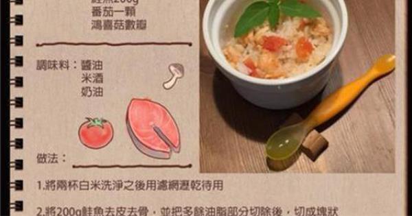 義式奶香鮭魚炊飯 建議月齡:1Y以上已吃過乾飯及鮭魚的寶寶 鴨捲食用月齡:1Y6m 準備材料:白米2杯 水2杯 鮭魚200g 番茄一顆 鴻喜菇數瓣 調味料:醬油