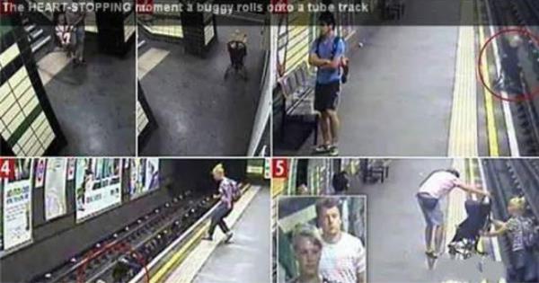 結果一陣氣流將第一輛嬰兒車拽入地鐵軌道。幸虧母親在旁邊看到,迅速跳下鐵軌救回嬰兒。而母親剛爬上月臺一輛列車就呼嘯駛過。場面非常驚險。  據倫敦警方後來公佈的調查資料顯示,停在燈箱前的嬰兒車後輪刹車可能沒有鎖好,因此被地鐵離站時的氣流推進軌道。警方目前正在尋找這對父母,以確保嬰兒的安全。並有可能依據相關法規對他們作出檢控。