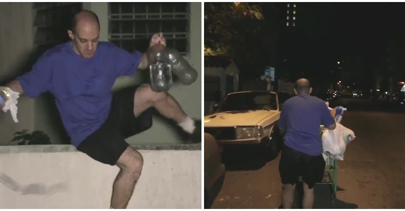 這時,威尼齊奧就推著一輛購物車出現,車上就裝滿了要給這些浪貓的食物,接著他就把貓食倒在路面上讓貓咪們吃。