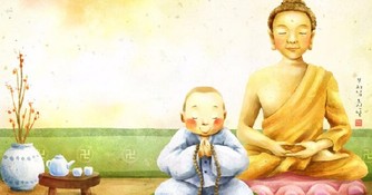兩個腳掌相對,膝蓋著地,雙手一手放在胸前,一手放在腹部