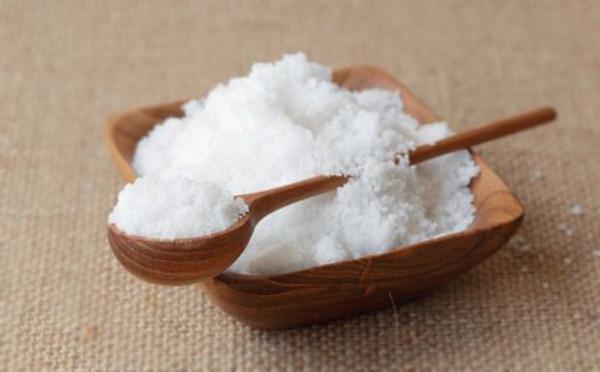 剪完香菇的根部後往容器中加入適量的食鹽和麵粉,食鹽大概兩小勺,勺子的大小最好是我們炒菜時加調味品的勺子。