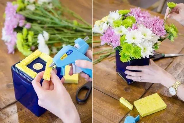 找個小瓶子,剪一塊大小合適的海綿捲起來塞進瓶子裡。