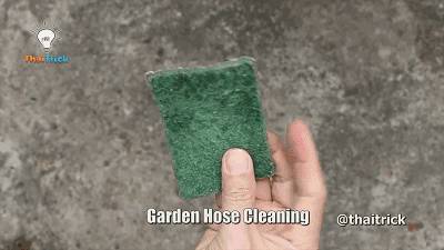 打開水龍頭,利用水的沖力把海綿和水管內的髒東西沖出來。