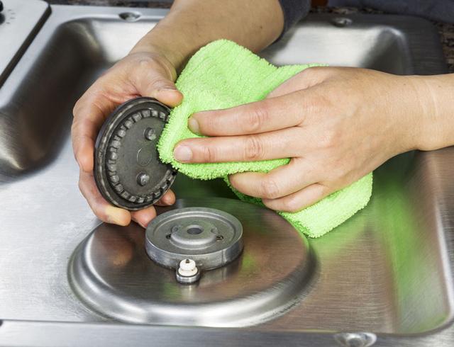 將兩勺白醋與200ml溫水混合,然後灑在煤氣灶上有汙漬的地方,再用抹布或者海綿擦蘸取一些醋水混合物,輕輕一擦油漬就隨著抹布下來了。在不損壞煤氣灶表麵的前提下,把汙漬統統趕走。