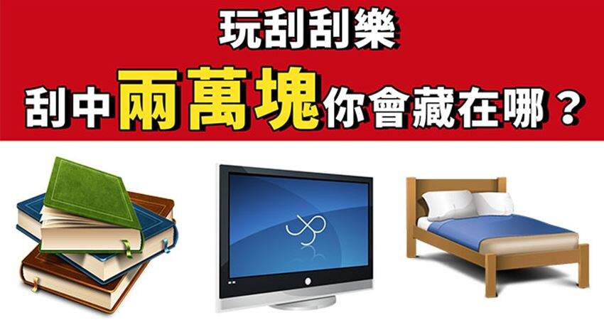 如果有天你心血來潮買了張刮刮樂來玩,一刮就中了兩萬元現金,你回到家會想把這兩萬塊偷偷的藏在圖中的哪個地方呢?