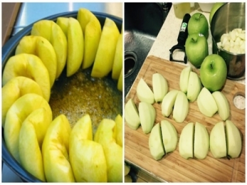 4.然後放入切好的蘋果塊煮一會兒,待蘋果塊變顏色即可。