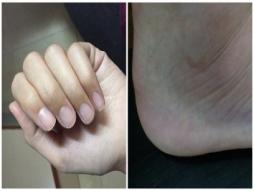 例如指甲如果發現了白點類的,有橫紋,豎紋,就要特別小心了,這種就是皮膚癌,一般這種現象出現後,不多久一般會在半到1個月內,身體的皮膚會有異常的情況。