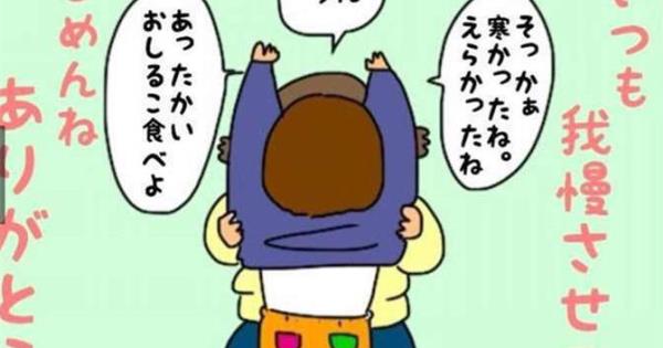 」  對兒子來說,弟弟出生後許多的事情就開始改變了,好像自己的事情總是被擱在一邊,會讓他充滿不安的感覺。 他會覺得,為什麼媽媽不會像之前一樣這樣對我呢?不多看看我嗎?不像之前一樣我好寂寞…想要媽媽幫我做些事情讓我安心.. 等到背濕透之後才發現: ▼小哥哥說:「媽媽抱抱。」 媽媽:「恩~再等一下下」  弟弟出生後3個月後,因為要一直抱著餵奶,小哥哥就會在背後緊緊貼著。 ▼小哥哥:「轉過來我這邊…」 媽媽:「恩~再等一下下」  ▼終於都睡著了。  ▼恩?背好像涼涼的!  ▼媽媽轉頭:「是口水嘛…?」  ▼弟弟哭著說:「媽媽..抱抱…」  ▼媽媽:「對不起…」  ▼小哥哥:「媽媽身上有弟弟的味道…」  在那一天以後,媽媽就盡量抱著兒子睡覺,其實小哥哥也才2歲…讓你一直忍耐著抱歉,讓你覺得寂寞抱歉。 寒冷和寂寞都要忍耐: ▼媽媽:「天氣也太冷了吧!」  ▼媽媽:「冷到骨頭都痛了。」 媽媽轉頭對小哥哥說:「對不起阿!可以自己脫嗎?媽媽等一下再幫你喔。