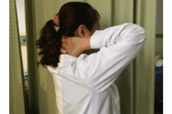 仰手懶腰:雙手交叉,盡可以向空中伸展,掌心向上。頭順勢抬頭看向手背,保持5秒。  頸項爭力:左手放在背後,右手手臂放在胸前,手掌立起向左平行推出。