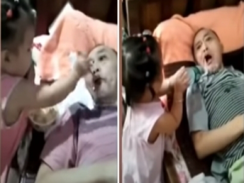 而這段小孫女照顧爺爺的影片在上傳網路後,引起網友熱烈分享: