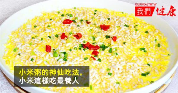 2. 轉小火,用湯勺攪拌一下,再煮至米碎軟料黏稠,按自已的喜好放進冰糖即可。  ●雞茸豆腐胡蘿蔔小米粥 原料:小米、雞肉、豆腐、胡蘿蔔 做法: 1. 先把小米粥煮好;雞胸肉切碎,和嫩豆腐一起放入攪拌機打成雞肉豆腐泥。 2. 雞肉豆腐泥放入開水中燙熟做成小小的雞肉豆腐丸子;胡蘿蔔切成薄片蒸熟,再碾碎。 3. 把胡蘿蔔泥混合到粥中,再放入煮熟的雞肉豆腐碎即可。 ●香菇西芹小米粥 原料:小米30克、西芹20克、香菇2朵 做法: 1. 西芹去葉洗淨,切小丁,用開水略焯;香菇去蒂,洗淨,切小丁。 2. 湯鍋內加冷水燒開,下入小米熬煮,中火煮至小米粒漲開,放入香菇丁續煮。 3. 蓋上鍋蓋,轉小火將小米煮爛,下西芹丁煮開即可。  ★要想煮出香甜的小米粥需注意: 小米粥不宜太稀薄;淘米時不要用手搓,忌長時間浸泡,忌用熱水淘米。