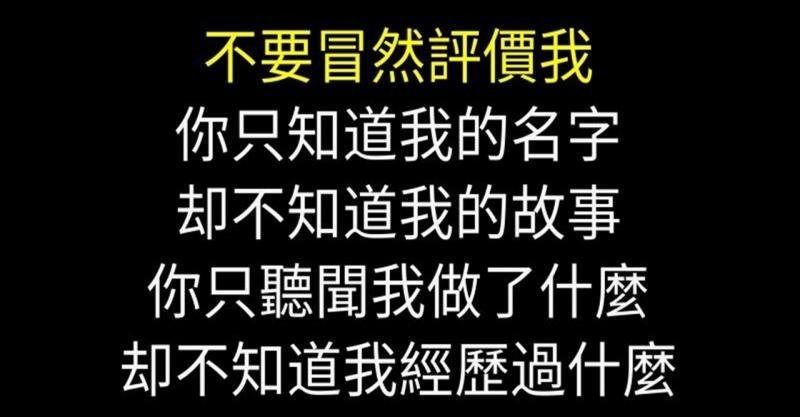 有句話是: 「不要冒然評價我,你只知道我的名字,卻不知道我的故事。