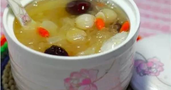 3.將百合放入南瓜中,撒幾顆冰糖,注滿清水。 4.蓋好頂蓋放入蒸鍋,蒸鍋上出蒸汽後再蒸30分鐘即可。 Tips: 如果買不到鮮百合,可用幹百合代替。  百 合 煲 銀耳蓮子百合羹 材料: 蓮子、幹百合、銀耳、枸杞、冰糖 做法: 1.蓮子洗淨用溫水浸泡半小時後撈出。百合用溫水泡10分鐘。銀耳剪去黃色的根部位置,用溫水泡10分鐘,撕成小朵。 2.將蓮子放入開水鍋中煮10分鐘。鍋中水量約占鍋體積的一半,要能沒過所有食材。水量要一次加入。 3.再放入泡發好的銀耳,小火煮20分鐘;再放入百合,煮20分鐘。