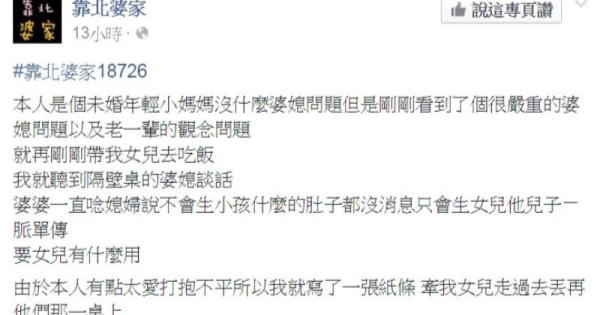 隔壁桌的婆婆狂念媳婦只會生女兒沒路用,她馬上就丟紙條霸氣回應啊!