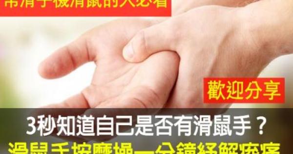 【滑鼠手按摩操】滑鼠用多了指頭好僵硬,腕子也痛,我可不想成為滑鼠手的目標,還是按摩按摩吧。邊工作邊按摩,自己做自己的按摩醫生。 |