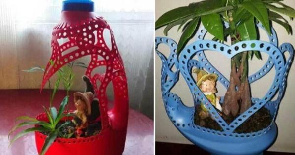 平時喜歡有創意的東西,喜歡自己搞點小製作,這些都是用洗衣液瓶,一把美工刀和一把電烙鐵製作而成的,刀修型,烙鐵燙圓洞,控製好烙鐵的溫度,可一次成型,花草可栽發財樹,幸福樹,袖珍椰樹等耐陰類好養花草。太漂亮了,簡直變廢為寶啊!