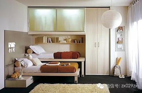 雙層疊用的小床可方便地抽拉出第二層,適宜兩個小孩的家庭