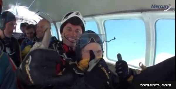 天哪!關於跳傘這樣的極限運動,一般的年輕人都不見得敢嘗試了,但是這位年事已經高達90歲的奶奶卻毅然決然地決定要玩跳傘!