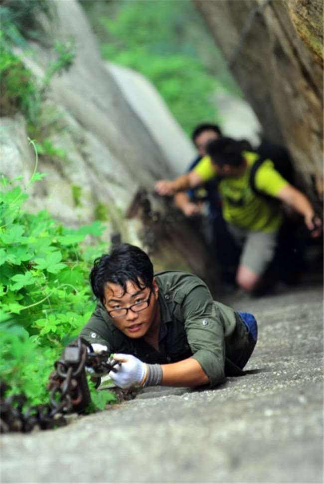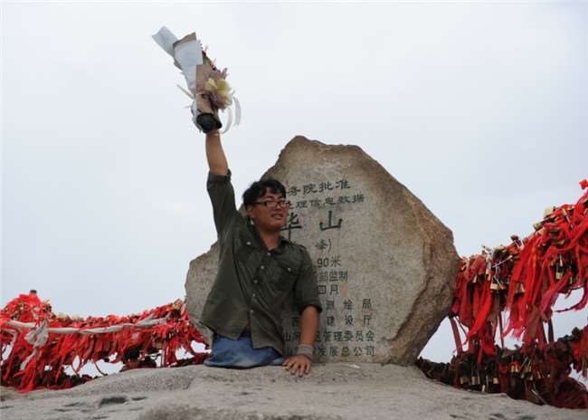 2012年,他靠雙手登上了海拔總和8498公尺的中國五嶽,成為全球「雙手登五嶽」第一人。