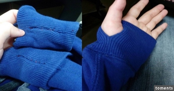 網友like026 (超短蘿蔔腿.)在PTT笨版上PO文,「阿嬤那不是破洞!」然後文內附上一張妹妹傳來的圖片,「阿嬤又把洞縫起來了啦...」原來是他的袖口上有設計一個讓大拇指可以穿過的洞,沒想到卻被阿嬤以為是衣服破掉,貼心地縫起來了。