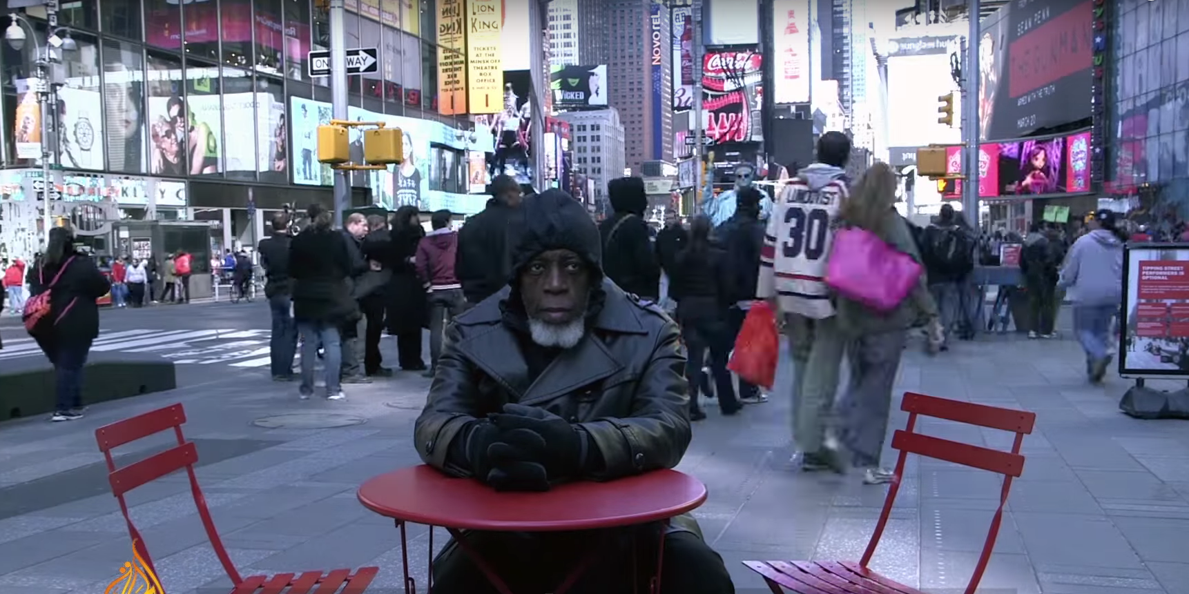 看著時代廣場的人潮和滿天霓虹燈的景象,Otis困惑表示:「 大家耳朵裡都有條電線,看起來像CIA探員,人手一隻叫做iPhone的電話,走路時似乎都不用看路,只要低頭盯著它,就好像它會操控你的步伐和方向,實在太神奇了。」