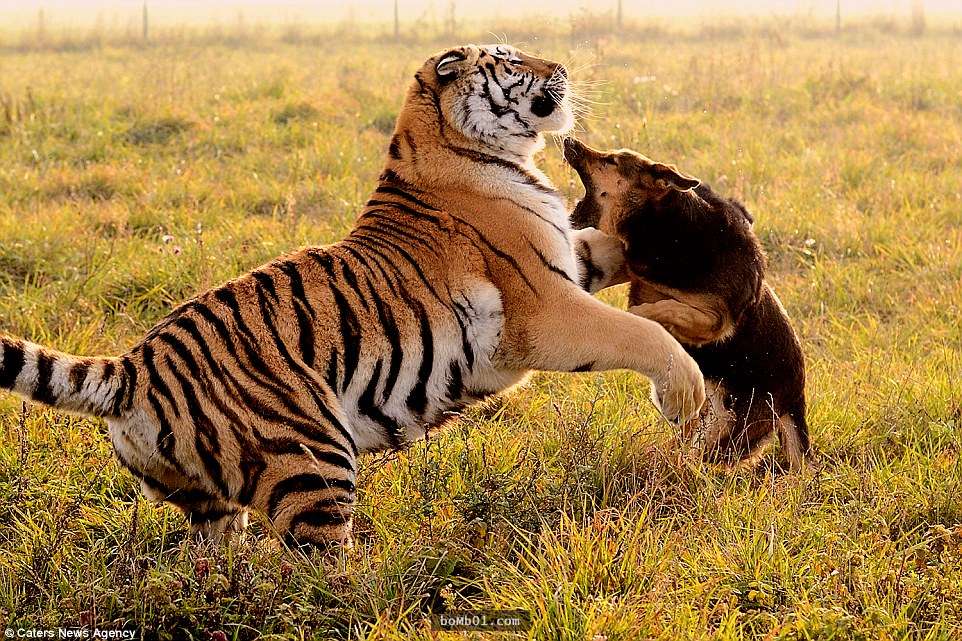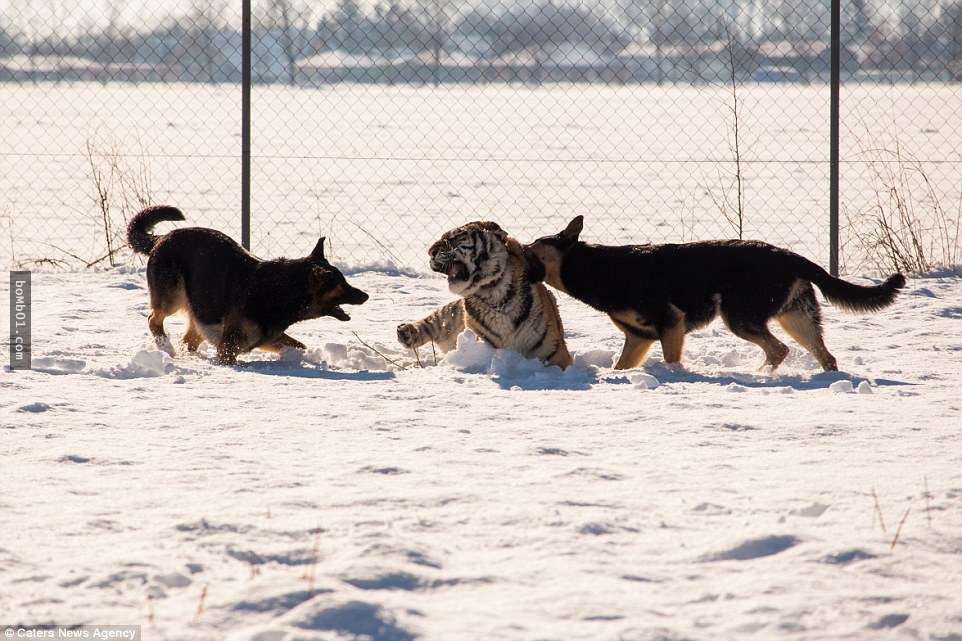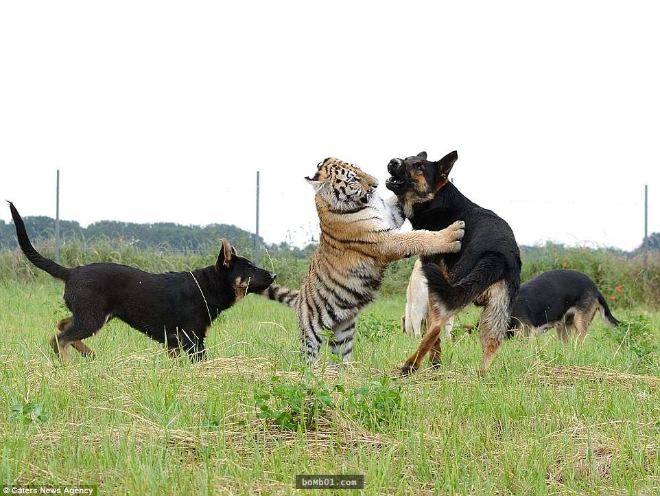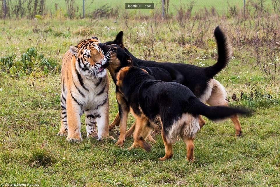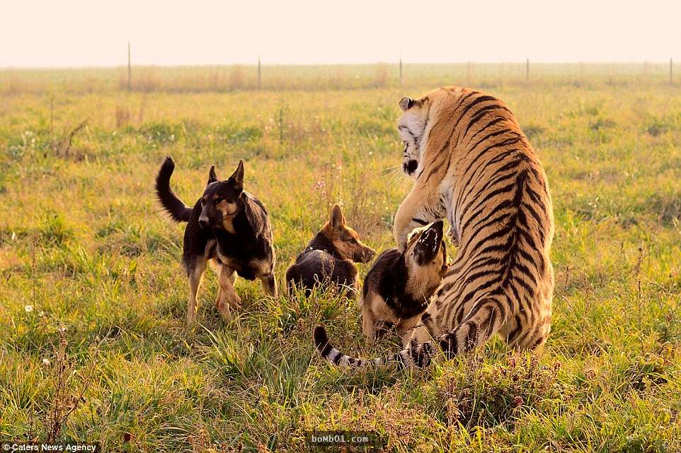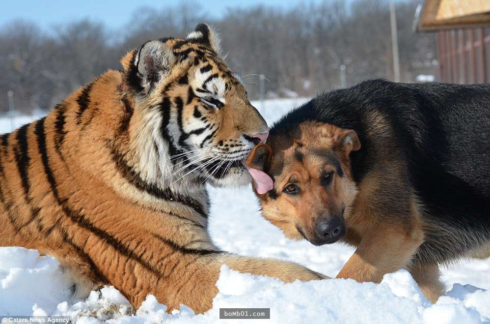 動物之間的友誼比人類寬容的多,種族、性別對牠們來說並不重要。在斯洛伐克塞內茨的自然保護區內,3隻德國牧羊犬和2隻西伯利亞虎成為了好朋友。牠們一起嬉戲玩鬧,和諧相處的模樣讓人覺得很驚奇。