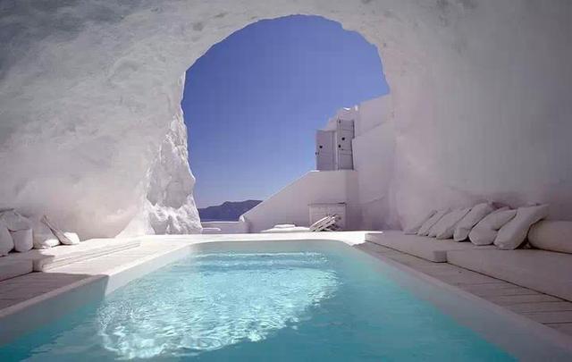 14在希臘聖托裏尼島,徜徉在洞穴泳池中