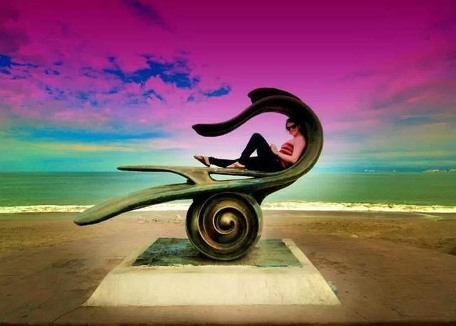 19在墨西哥Puerto Vallarto,坐在沙灘雕塑中