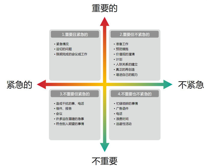 把工作按照「重要」和「緊急」兩個不同程度進行劃分,