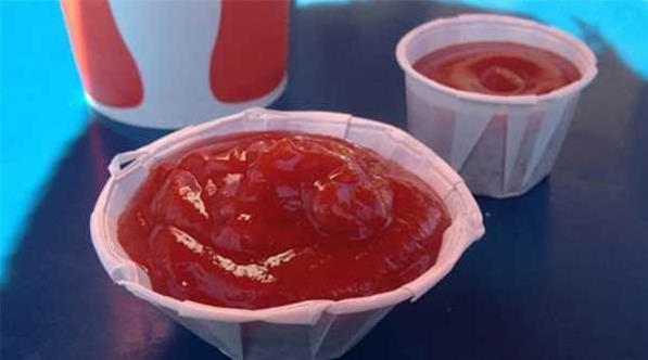 5. 要裝更多番茄醬的話,你可以把紙杯壓開,像底下那樣