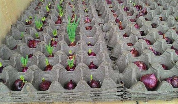 2、將準備好的紅蔥頭擺放在雞蛋盒中。