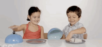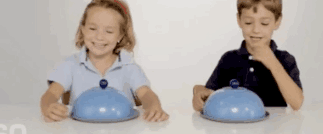 ▼當孩子們打開蓋子之後發現,一個盤子上有三明治,而另一個盤子上則什麼都沒有。