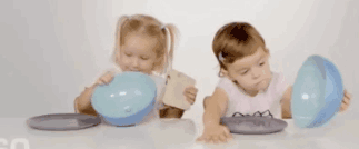 ▼但是,沒過幾秒,盤中有三明治的小朋友拿起三明治,將其分成兩半,並遞給了身旁的另一個小朋友。