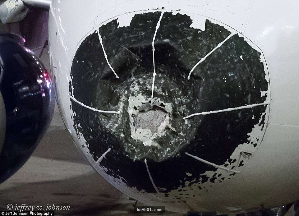 ▼受到了棒球大小的冰雹攻擊,駕駛幾乎是在「盲飛」的狀態下讓飛機緊急迫降在丹佛機場。