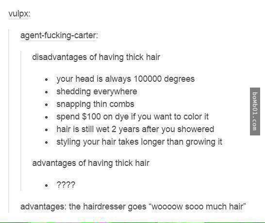 擁有濃密頭髮的好處:髮型師會說你的頭髮好多喔!