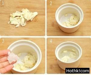 方法二:取大蒜十幾瓣,搗成泥狀放入杯中,加冰糖適量,用開水沖泡,溫服當茶飲,每日1次,咳嗽嚴重者每日2次,此方具有快速止咳化痰的特效。